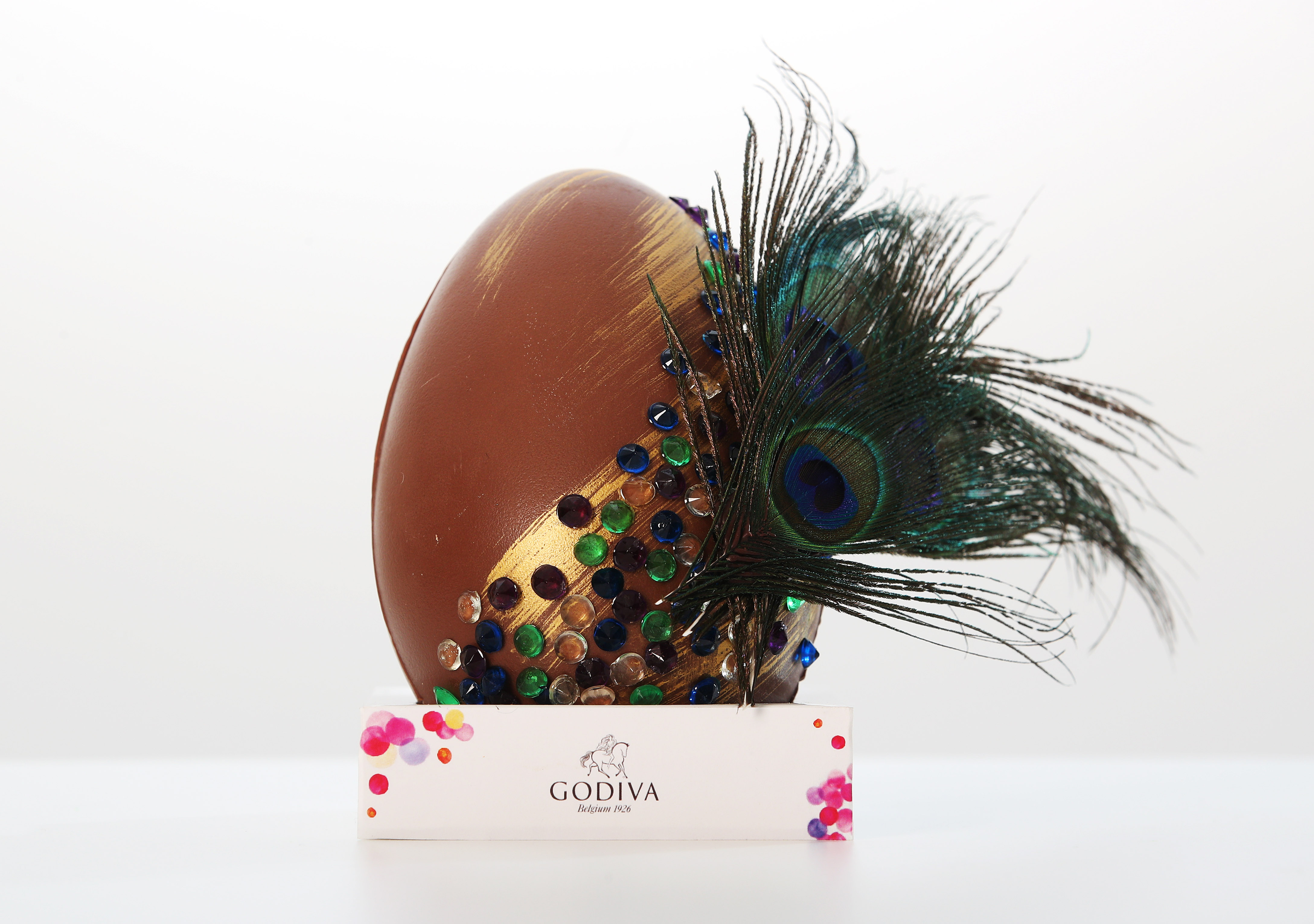 Cada diseñador trabajó con el Chef de Desarrollo Global de Godiva, Damien Andre para crear sus propias creaciones de edición limitada que van desde el huevo de Holland que presenta texto en negrita hasta el diseño de Candice Brown, que está ricamente decorado con joyas y elementos de pavo real.