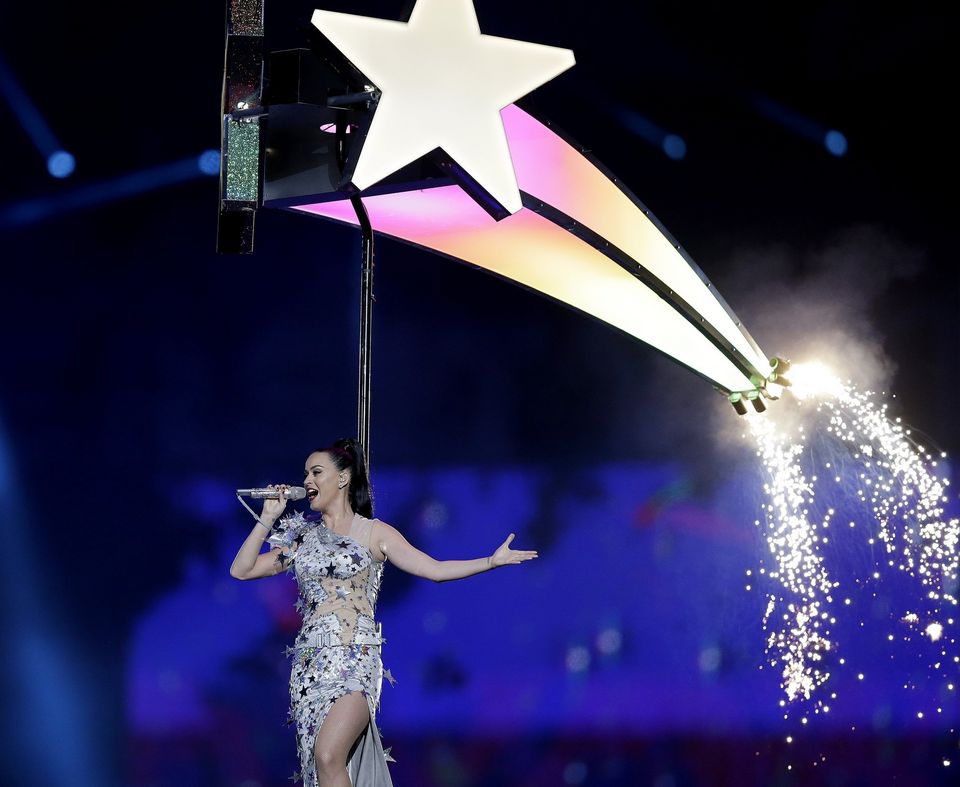 El mundo del pop de Katy Perry fue recreado en el escenario de la Super Bowl 2015 entre un variopinto atrezzo, que incluía desde tiburones, piezas de ajedrez y fuego hasta estrellas en el cielo que dieron pie a un increíble y rememorable partido.